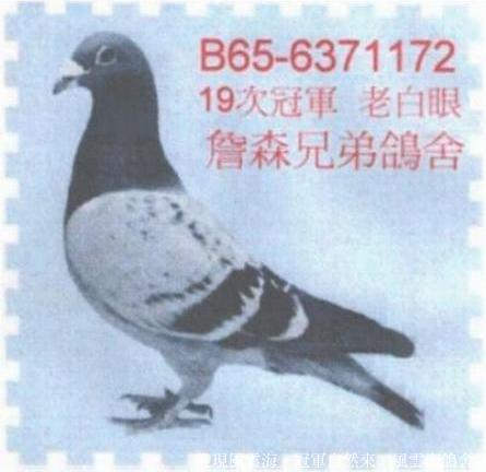 2000年秋季板聯分會(北海競翔)全會第四關殘11羽伯馬之一(三關殘存62羽佔2羽獲高獎賞)