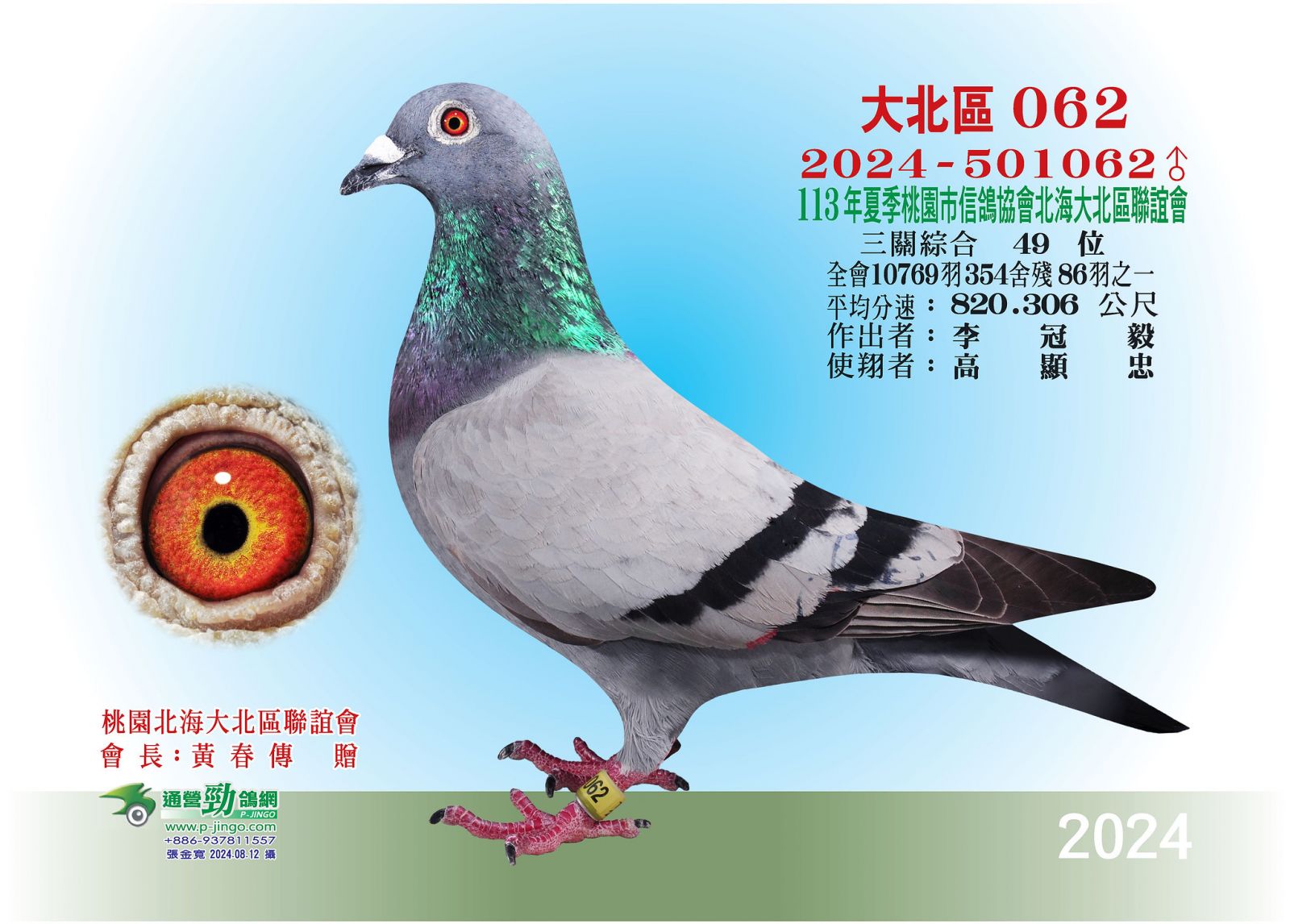 獨自管理參賽四個北海競翔鴿會:桃園聯合、桃德、大桃園、飛翔分會,四鴿會全勝,其中大桃園入賞五關綜合冠軍、5位,暗組總透龍獲全會最高獎賞。