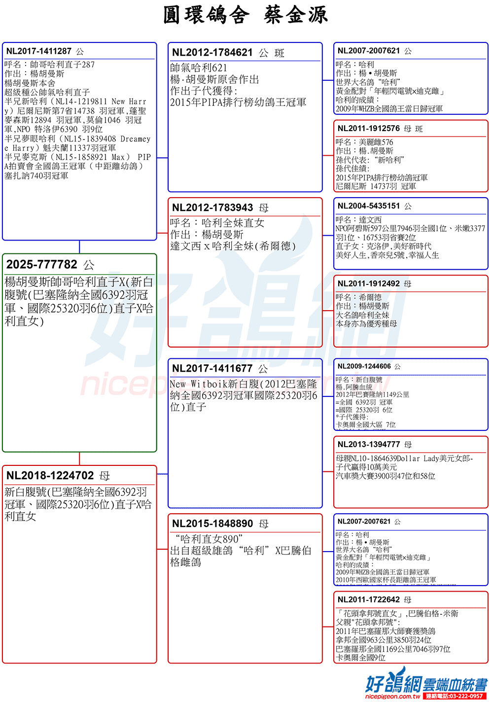 楊胡曼斯帥哥哈利直子X(新白腹號(巴塞隆納全國6392羽冠軍、國際25320羽6位)直子X哈利直女)