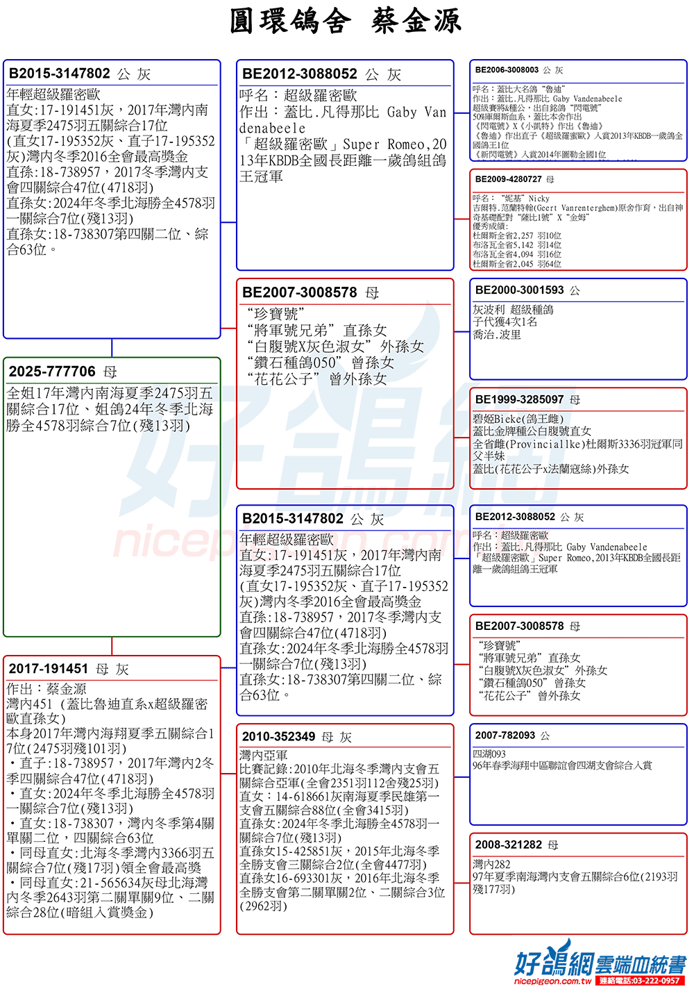 ▲父鴿、外祖父:B2015-3147802年輕超級羅密歐