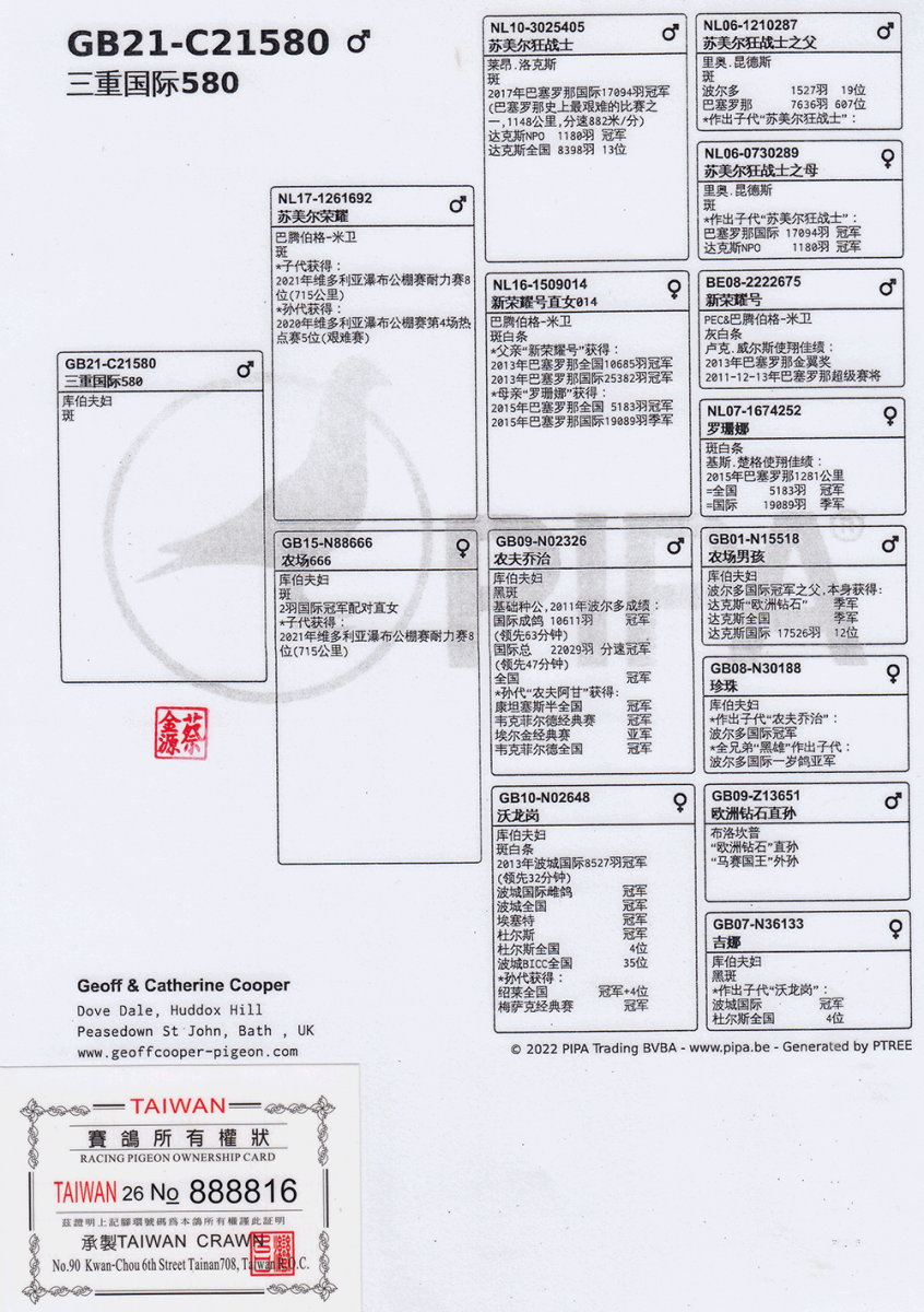 ▲外曾祖父:B08-2222675新榮耀號(影片來源:PPSPIGEONS)https://www.youtube.com/embed/5YfnT6bOF6g