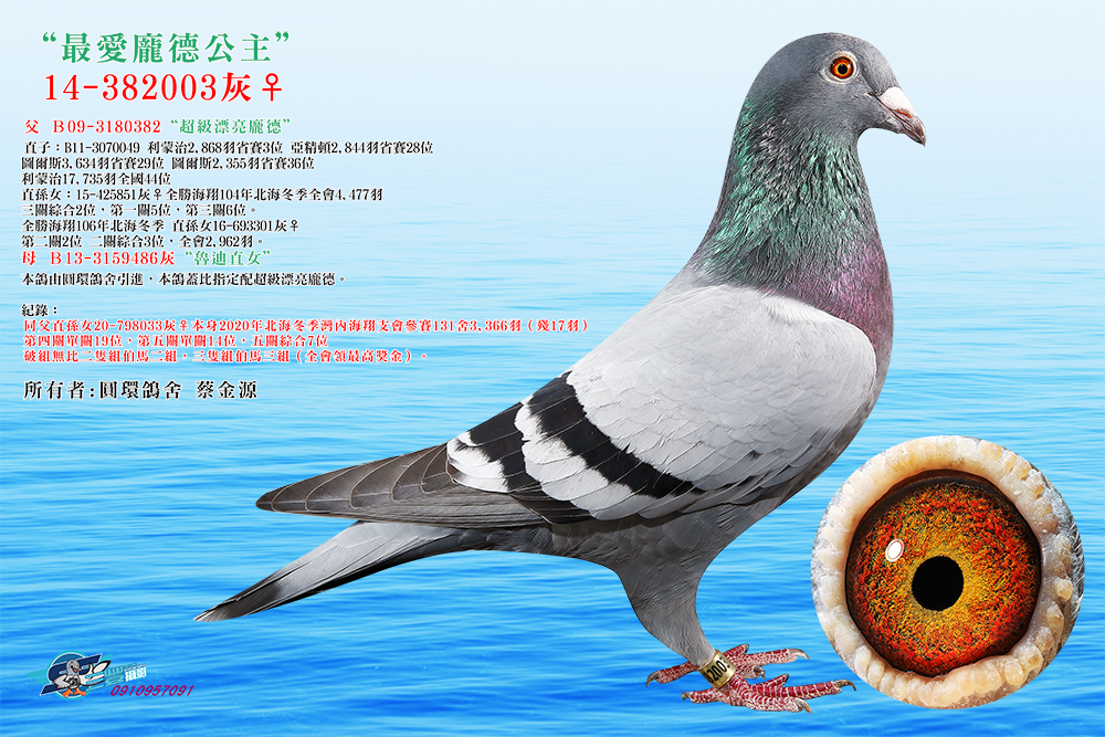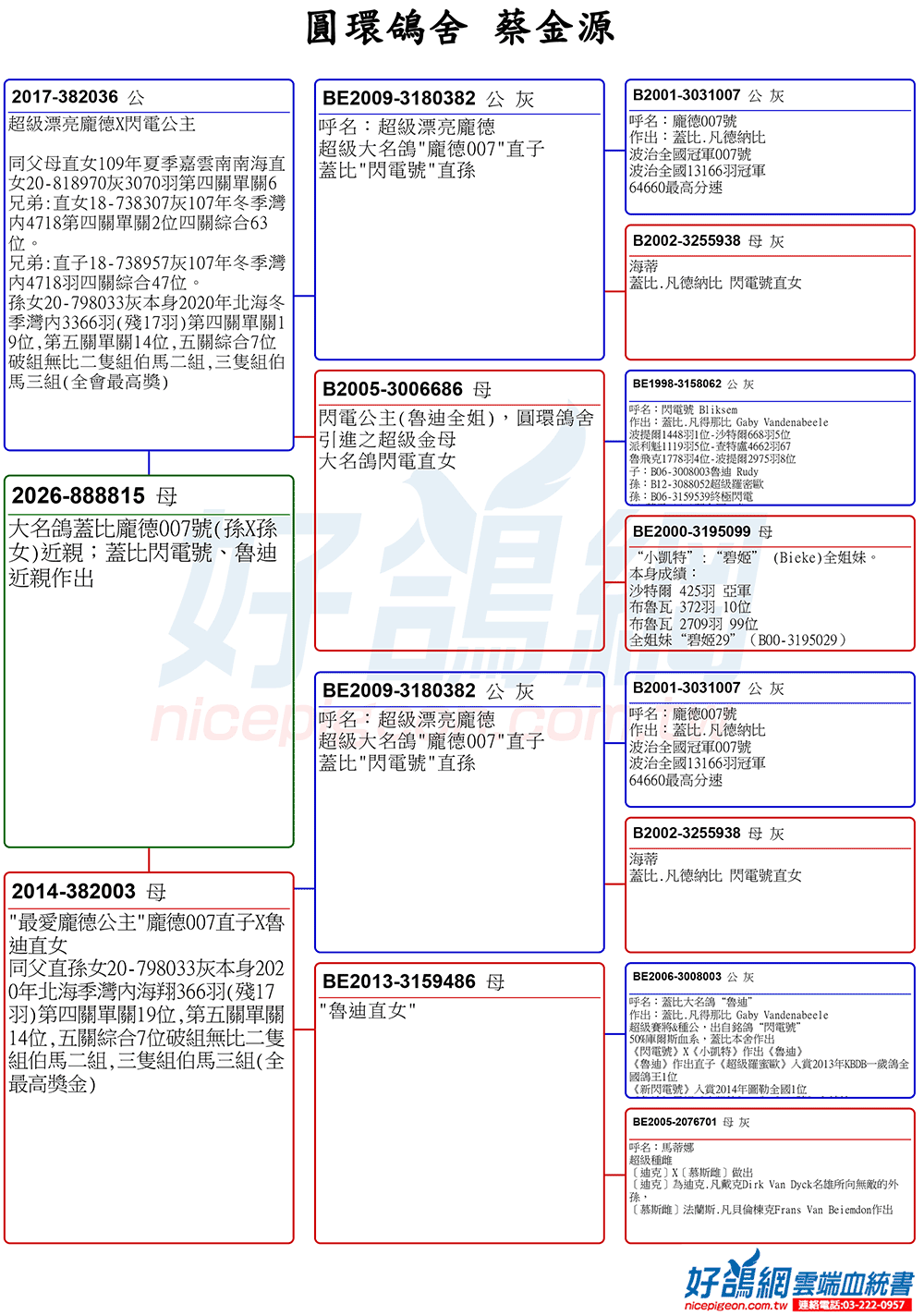 ▲曾曾祖母:B00-3195029“碧姬”波提爾全省2766羽亞軍,查特魯全省4498羽7位