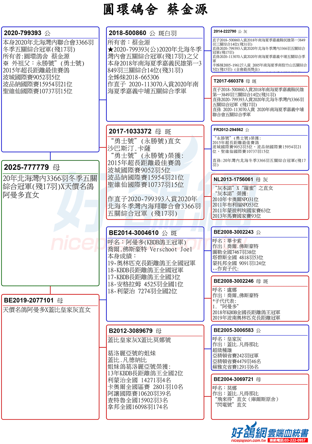 【領頭羊】20年北海灣內3366羽冬季五關綜合冠軍(殘17羽)X天價名鴿阿曼多直女