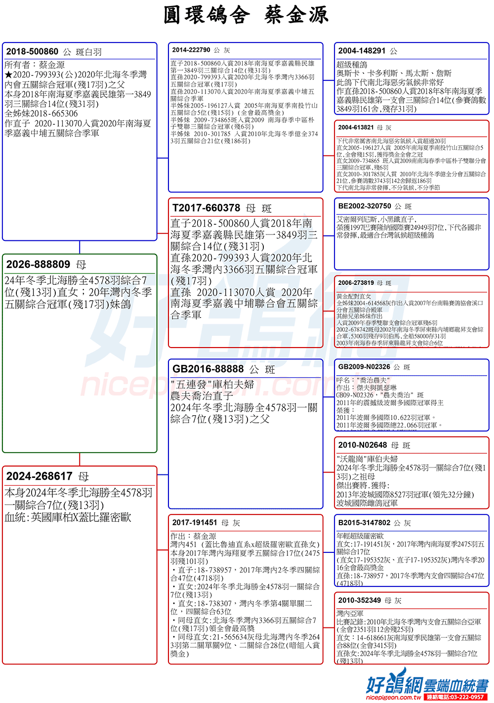 【領頭羊】24年冬季北海勝全4578羽綜合7位(殘13羽)直女;20年灣內冬季五關綜合冠軍(殘17羽)妹鴿