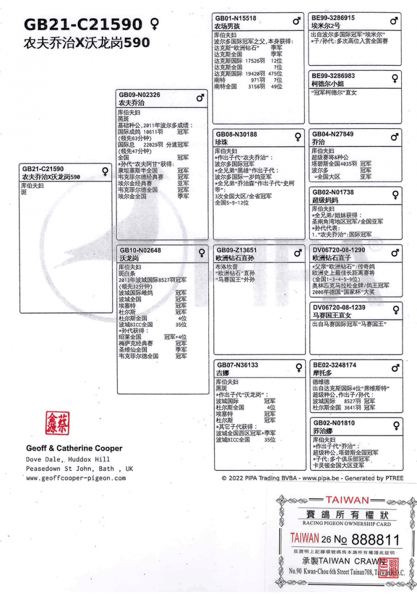 以蓋比血統家族聞名的蔡金源分享,蓋比鴿系的骨架堅硬、健康狀況、種鴿融合度都很好,很適合激烈的台灣海翔。近年如22-254484(灰)冠聖冬季3223羽五關綜合冠軍(全船15位),冠軍鴿之母就是由蔡董作出,血統為超級羅密歐4號(羅密歐直子)X漂亮小姐(魯迪直女)。這羽優秀的蓋比血統冠軍鴿在第一關單關亞軍、第二關單關季軍、第三關單關冠軍、第四關單關季軍,可以說是大殺四方、名不虛傳。可見,蔡金源的蓋比家族經過實戰驗證,無論是近親或是交配他系,都能夠入賞得獎屢創佳績。