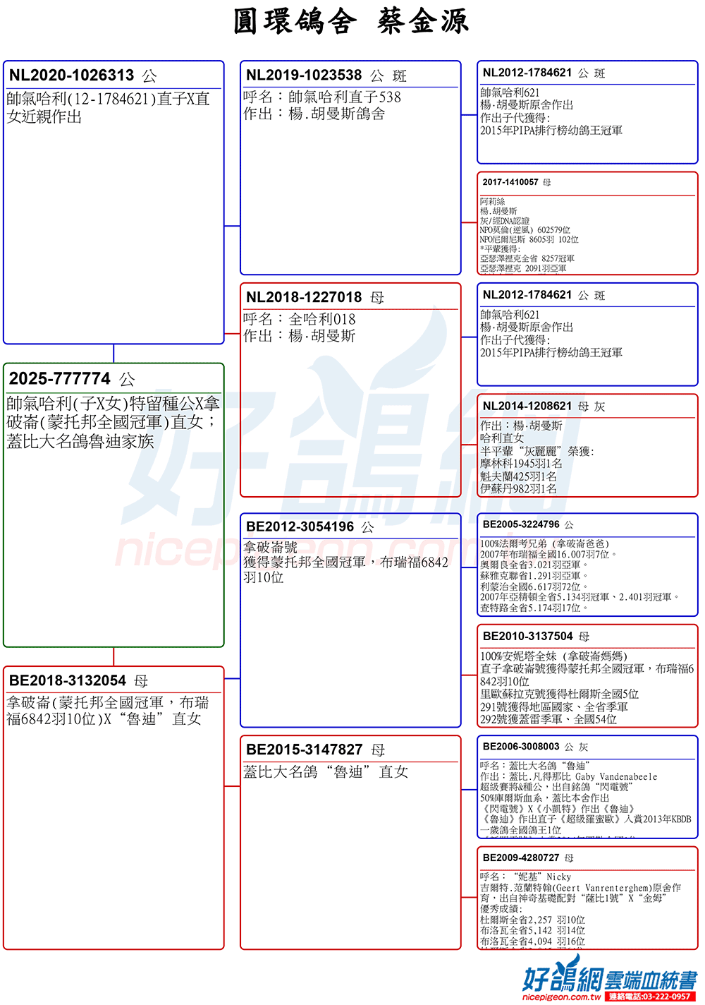 帥氣哈利(子X女)特留種公X拿破崙(蒙托邦全國冠軍)直女;蓋比大名鴿魯迪家族