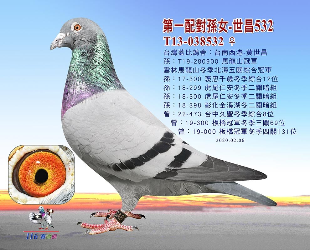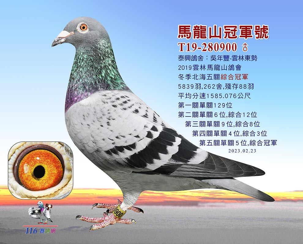 【領頭羊】《雙冠血脈》20年北海灣內聯合會3366羽冬季五關綜合冠軍(殘17羽)X馬龍山冠軍號直女