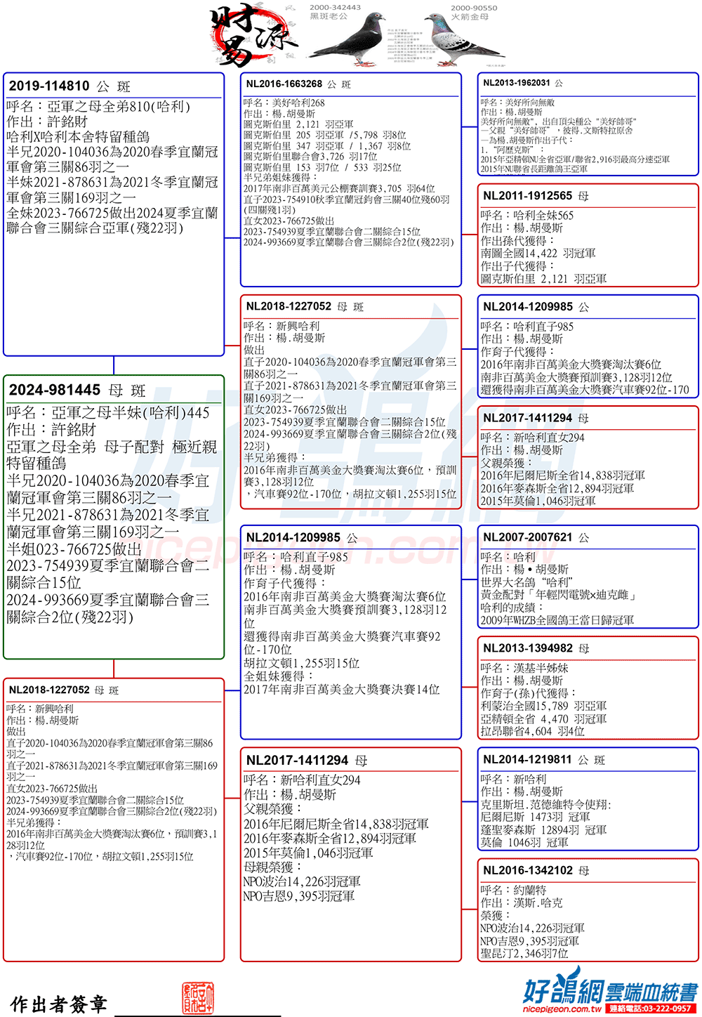 【鴿主推薦】佰萬種公(詹森白羽號)原配對近親家族