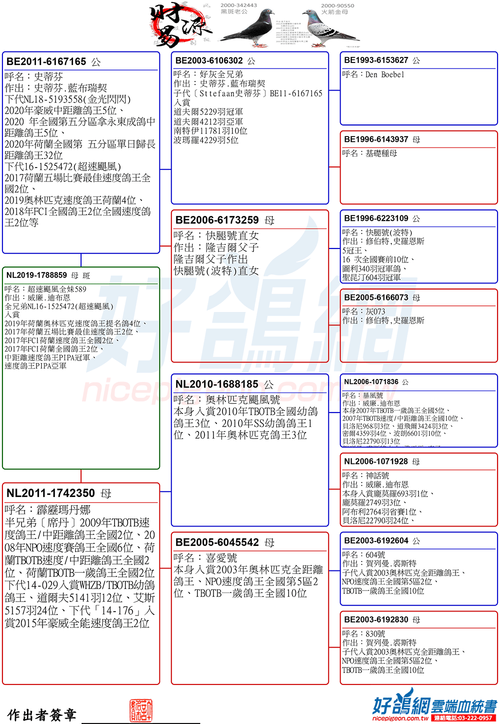 【鴿主推薦】佰萬種公(詹森白羽號)原配對近親家族