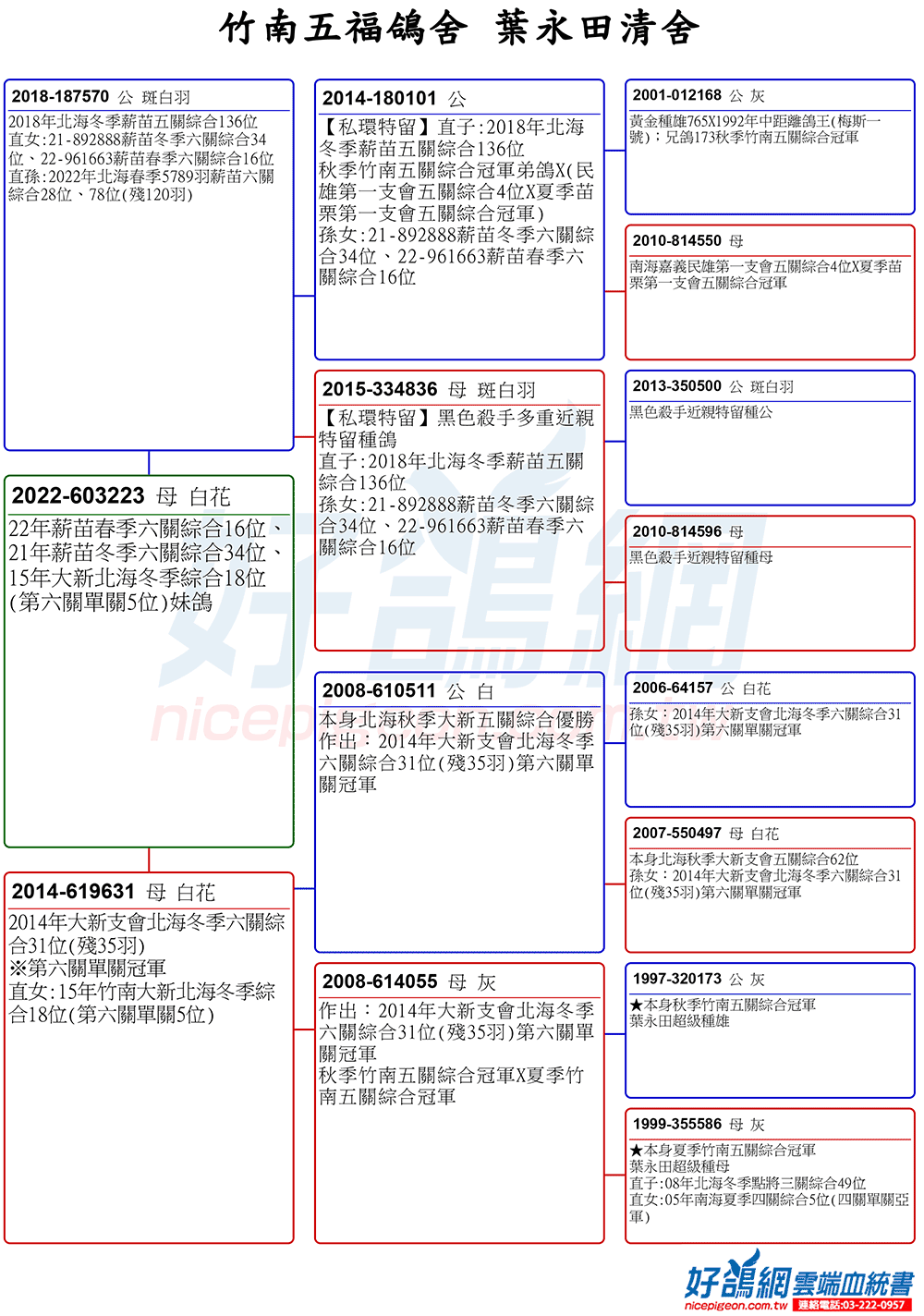 ▲母鴿:2014-619631本身2014年大新支會北海冬季六關綜合31位(殘35羽)