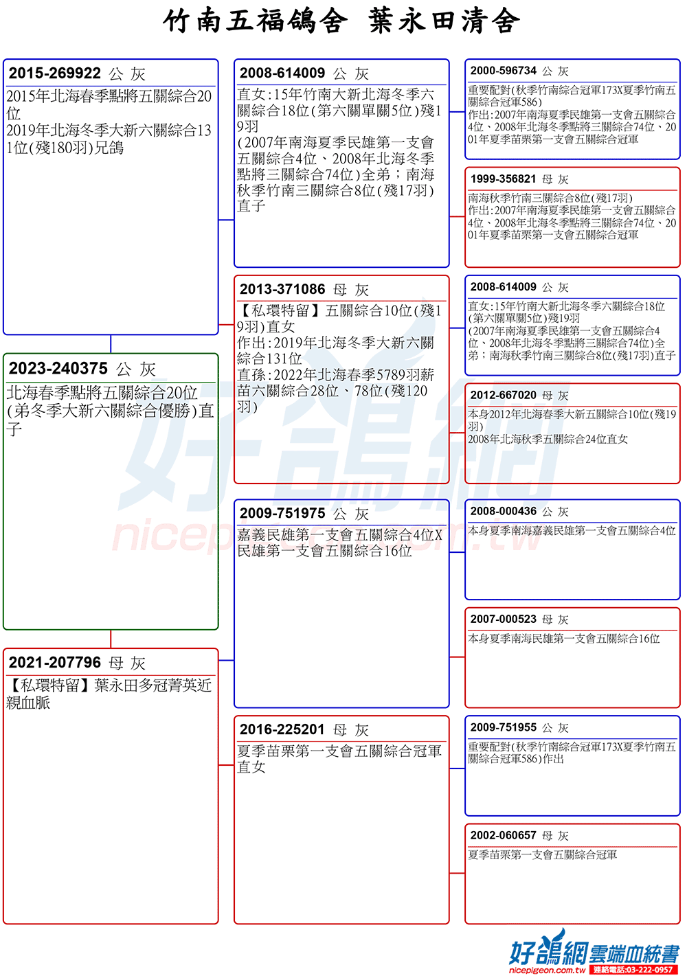 23年大北區冬季20106羽五關綜合77位(殘79羽)妹鴿;【雙伯馬】19年新北海春季11522羽五關綜合7位(殘20羽)X19年台中翊翔北海春季四關綜合7位(殘8羽)