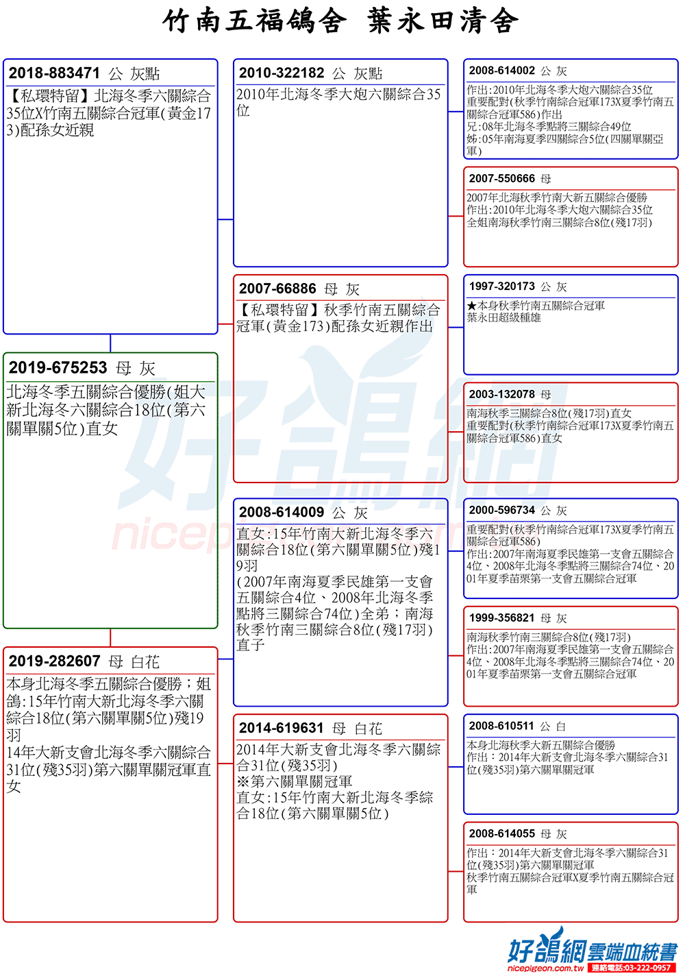 ▲曾祖父:1997-320173秋季竹南1100羽五關綜合冠軍(第一關、第五關冠軍)