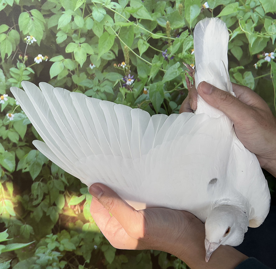 實地拜訪葉董鴿舍時,鴿舍環境整潔有序,清潔管理嚴謹,空間規劃寬敞且通風良好,使種鴿在健康皆維持在高水準。對於種鴿的篩選,葉董標準嚴格,寧缺勿濫。實際手握拍賣鴿時,可明顯感受到鴿子性格沉穩、不躁不驚,肌肉彈性與整體結構均衡,充分反映其在育種與調教上的精準掌握。