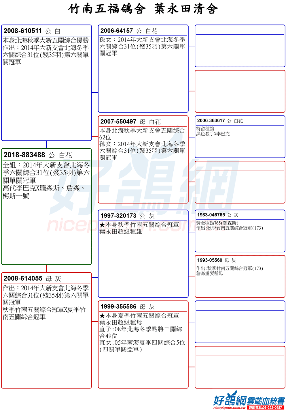 ▲外祖父:1997-320173秋季竹南1100羽五關綜合冠軍(第一關、第五關冠軍)