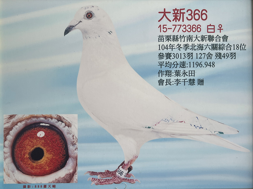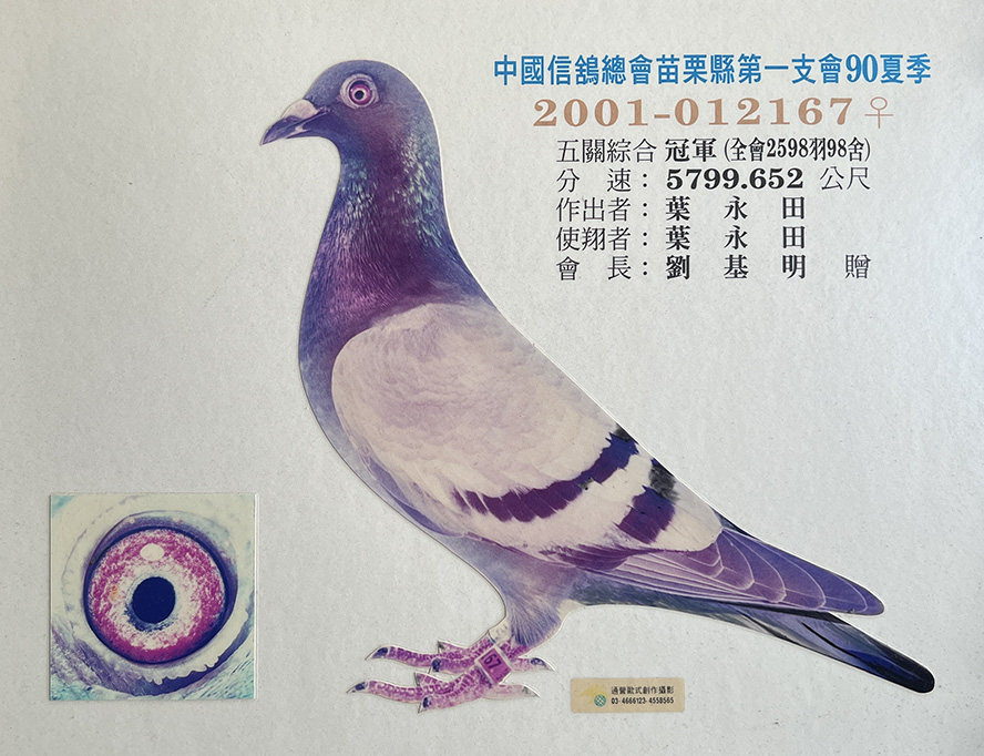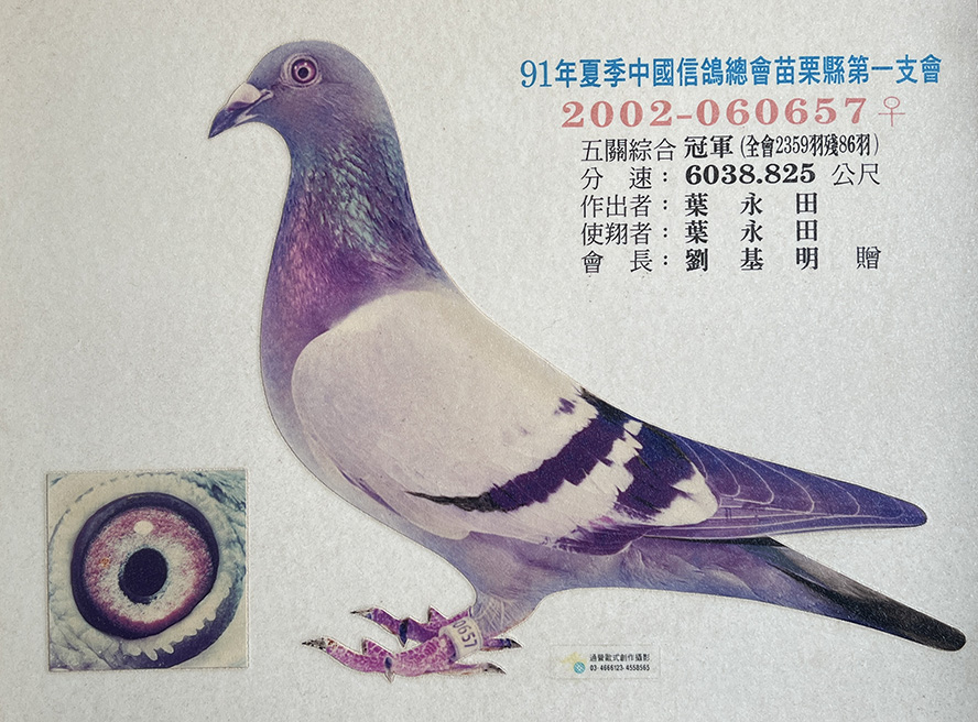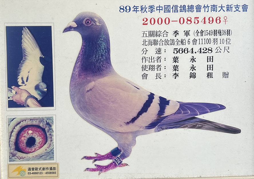 苗栗竹南資深鴿友、七十歲的葉永田先生,資歷深厚、實戰經驗豐富。投身養鴿數十年,從早期陸翔競賽一路轉向高難度的海翔賽事,親身歷經不同賽制、氣候與環境的反覆考驗,成績穩定突出,屢次榮獲大賞肯定,逐步為鴿舍奠定紮實而可靠的競翔基礎。