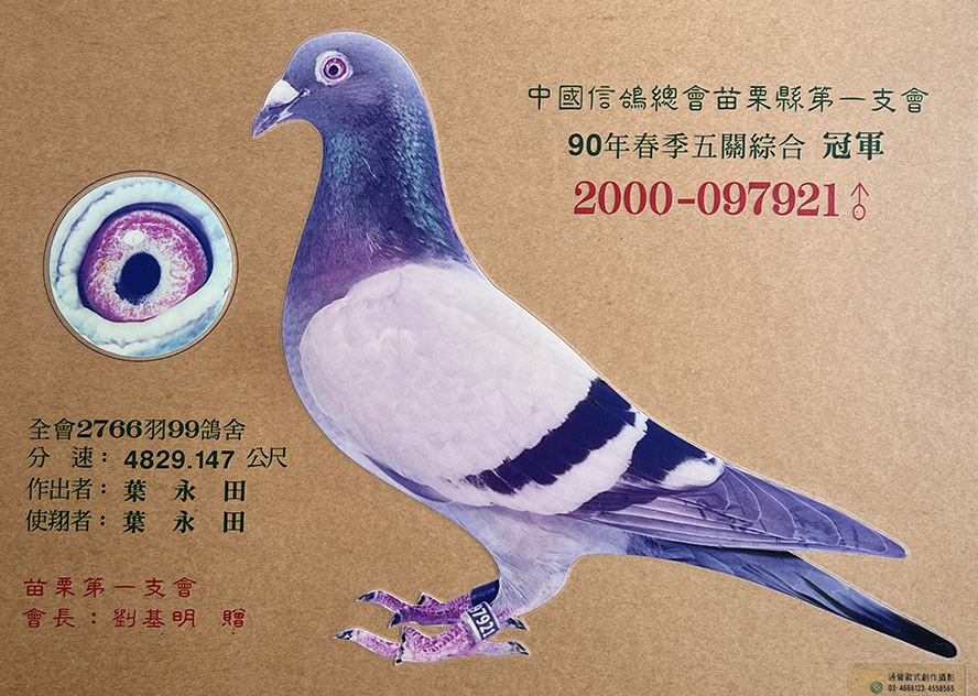 ▲00-097921春季苗栗第一支會2766羽五關綜合冠軍