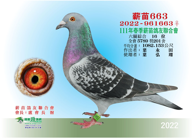 23年大北區冬季20106羽五關綜合77位(殘79羽)妹鴿;【雙伯馬】19年新北海春季11522羽五關綜合7位(殘20羽)X19年台中翊翔北海春季四關綜合7位(殘8羽)