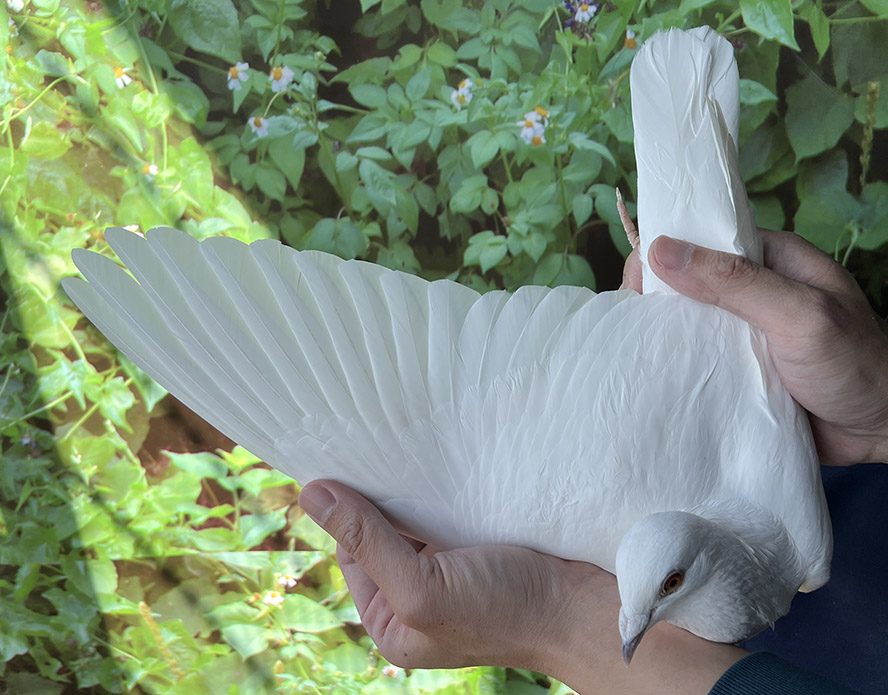 實地拜訪葉董鴿舍時,鴿舍環境整潔有序,清潔管理嚴謹,空間規劃寬敞且通風良好,使種鴿在健康皆維持在高水準。對於種鴿的篩選,葉董標準嚴格,寧缺勿濫。實際手握拍賣鴿時,可明顯感受到鴿子性格沉穩、不躁不驚,肌肉彈性與整體結構均衡,充分反映其在育種與調教上的精準掌握。