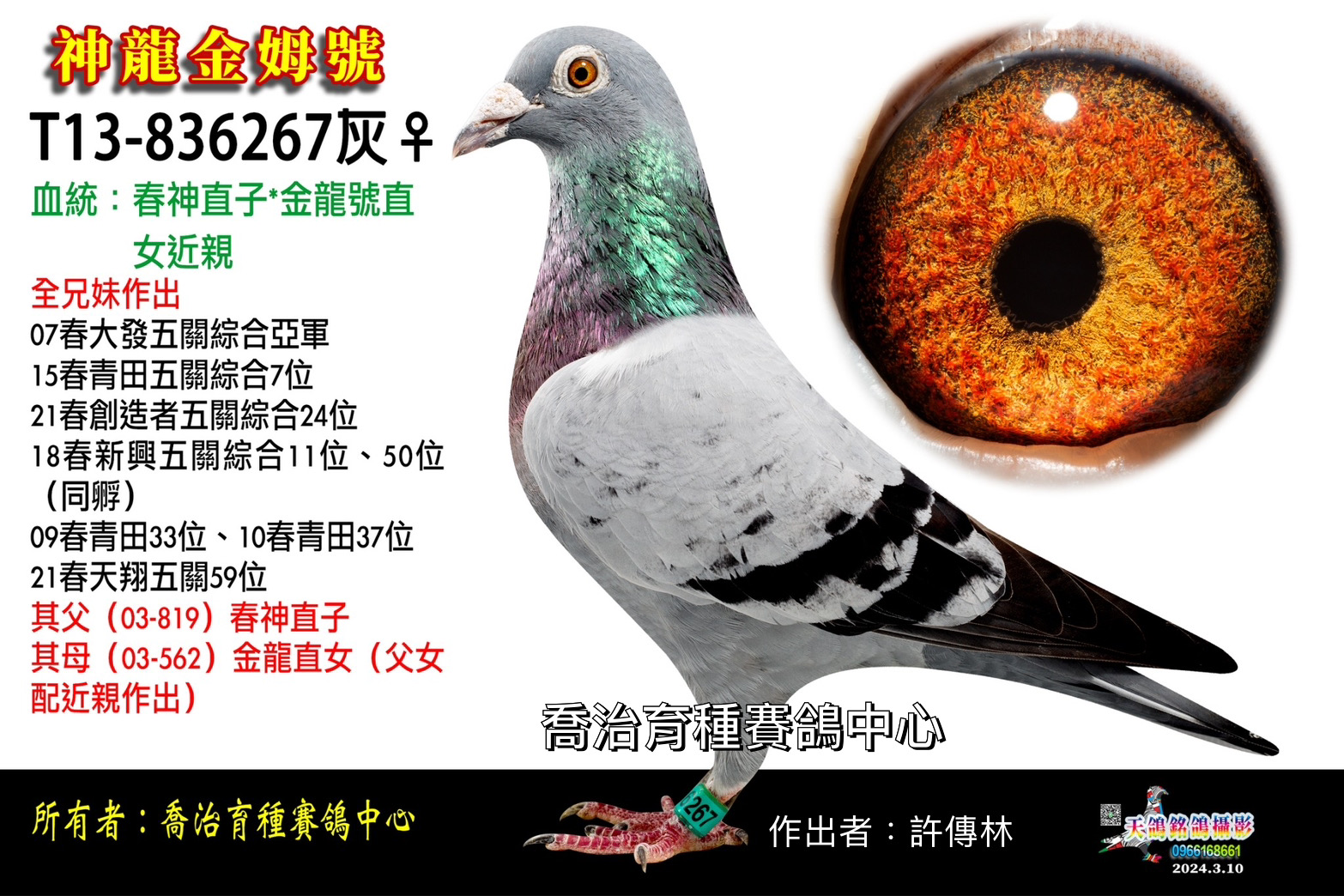 ▲母鴿:T13-836267神龍金姆號