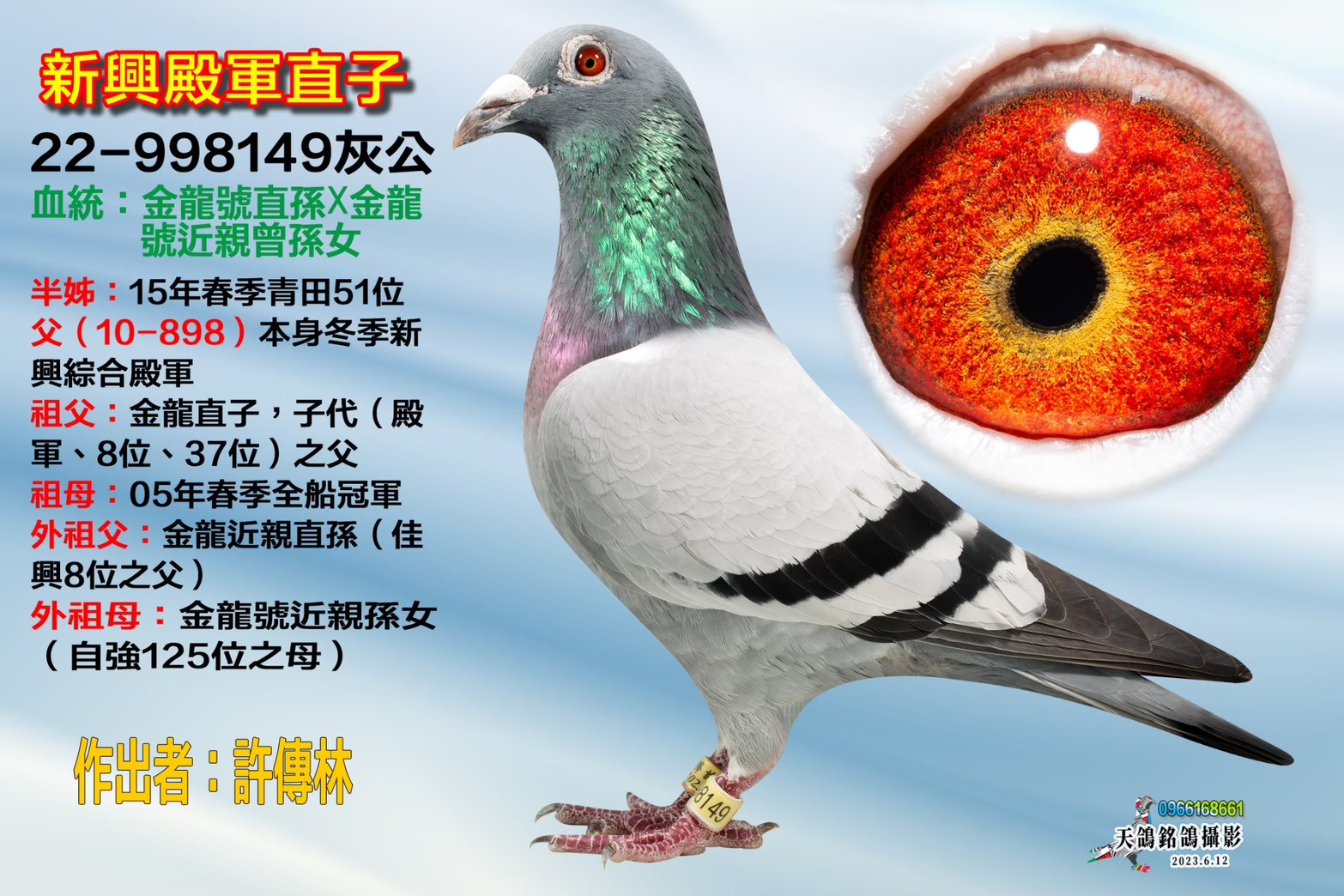 ▲父鴿:T22-998149新興殿軍直子