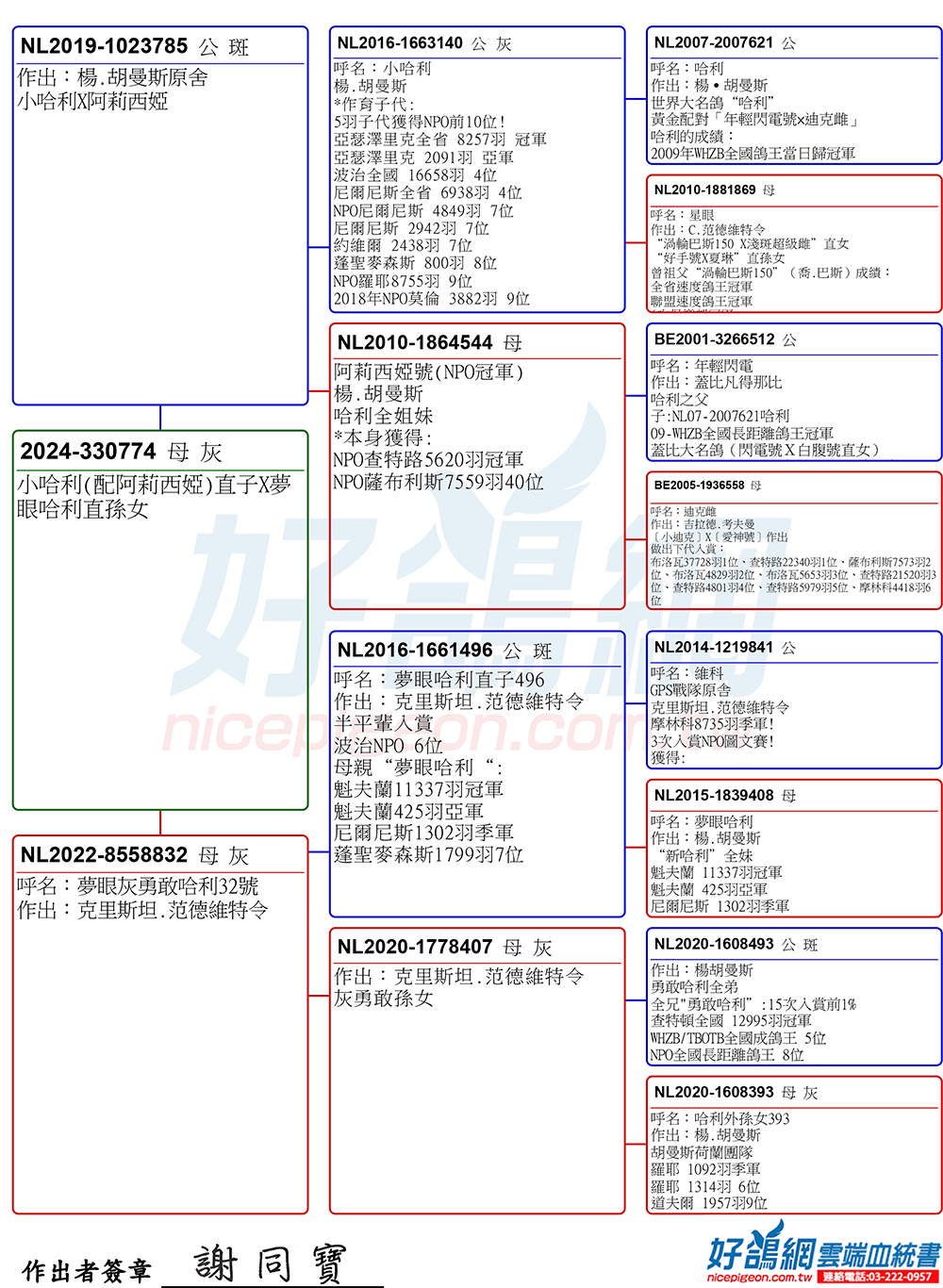 「哈利」,環號NL07-2007621,荷蘭名家楊•胡曼斯的超級賽鴿,荷蘭賽鴿史上最優秀的神奇賽將!「哈利」掀起的風潮可以說是當代鴿壇最優秀的超級鴿之一。