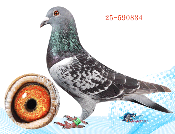 (4)91-02316灰白羽♂黑李3 1 6,其父鴿血統為林波爾,母鴿血統為老西翁系,這羽超級鴿是在1991年自強豪黑李處引進,下代翔續都有延續綜合性及快速歸巢之本能。