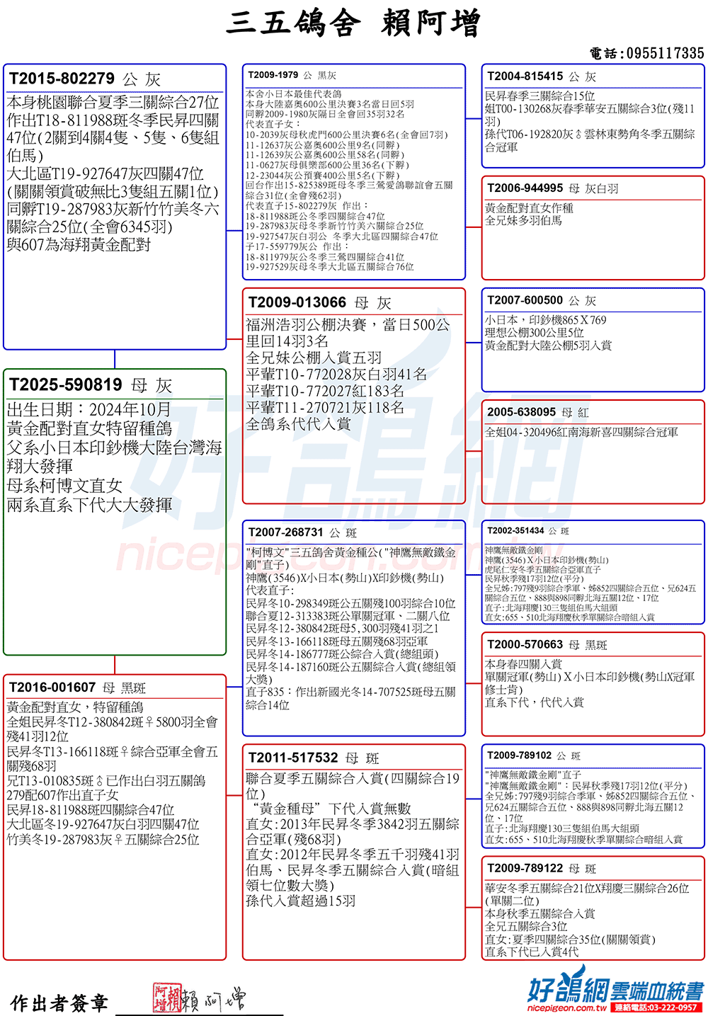 (黃金王子X新金姆)直孫X帽子戲法(波治全國60059羽總冠軍)近親母