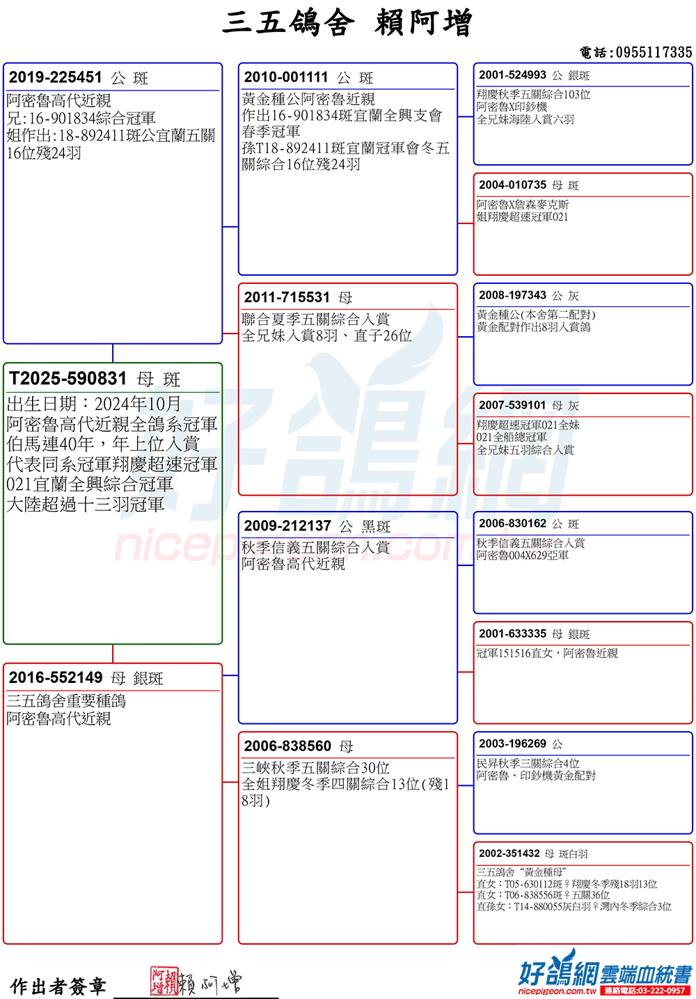 (黃金王子X新金姆)直孫X帽子戲法(波治全國60059羽總冠軍)近親母