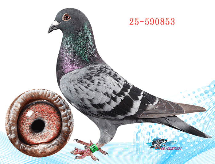 (4)91-02316灰白羽♂黑李3 1 6,其父鴿血統為林波爾,母鴿血統為老西翁系,這羽超級鴿是在1991年自強豪黑李處引進,下代翔續都有延續綜合性及快速歸巢之本能。