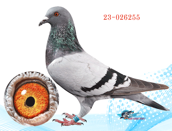 (4)91-02316灰白羽♂黑李3 1 6,其父鴿血統為林波爾,母鴿血統為老西翁系,這羽超級鴿是在1991年自強豪黑李處引進,下代翔續都有延續綜合性及快速歸巢之本能。