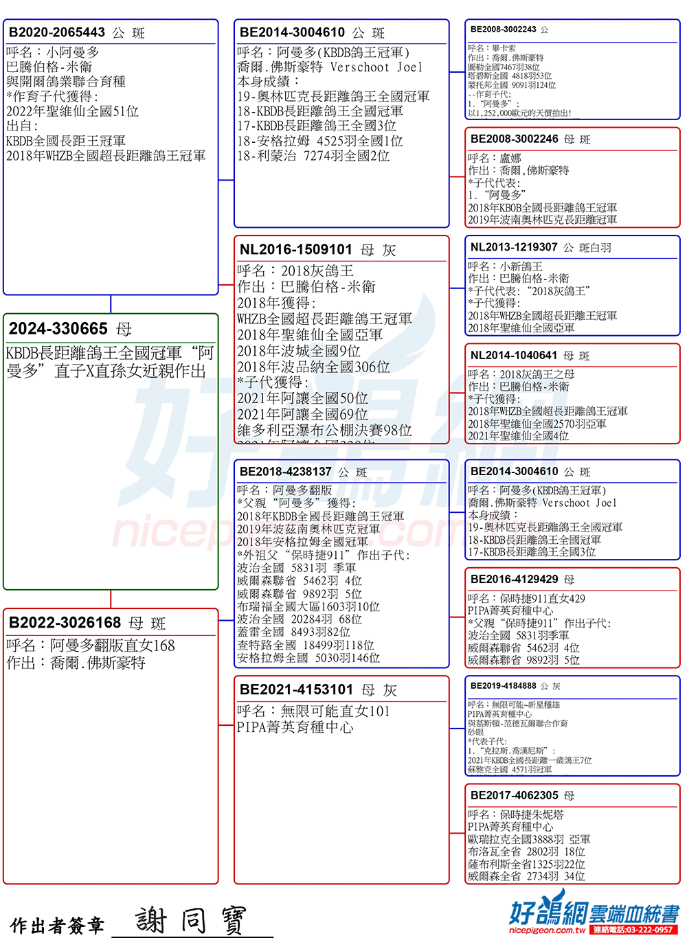 KBDB長距離鴿王全國冠軍“阿曼多”直子X直孫女近親作出