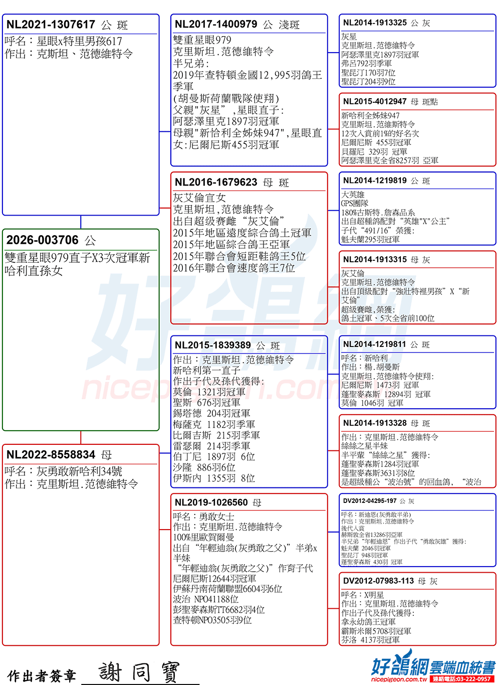 KBDB長距離鴿王全國冠軍“阿曼多”直子X直女近親作出