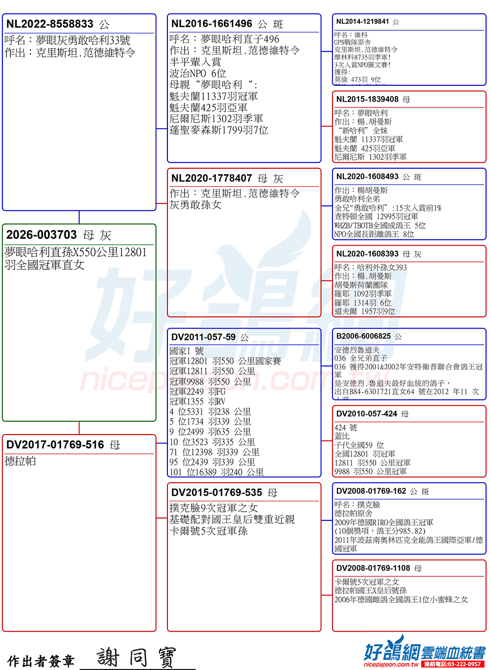 夢眼哈利直孫X550公里12801羽全國冠軍直女