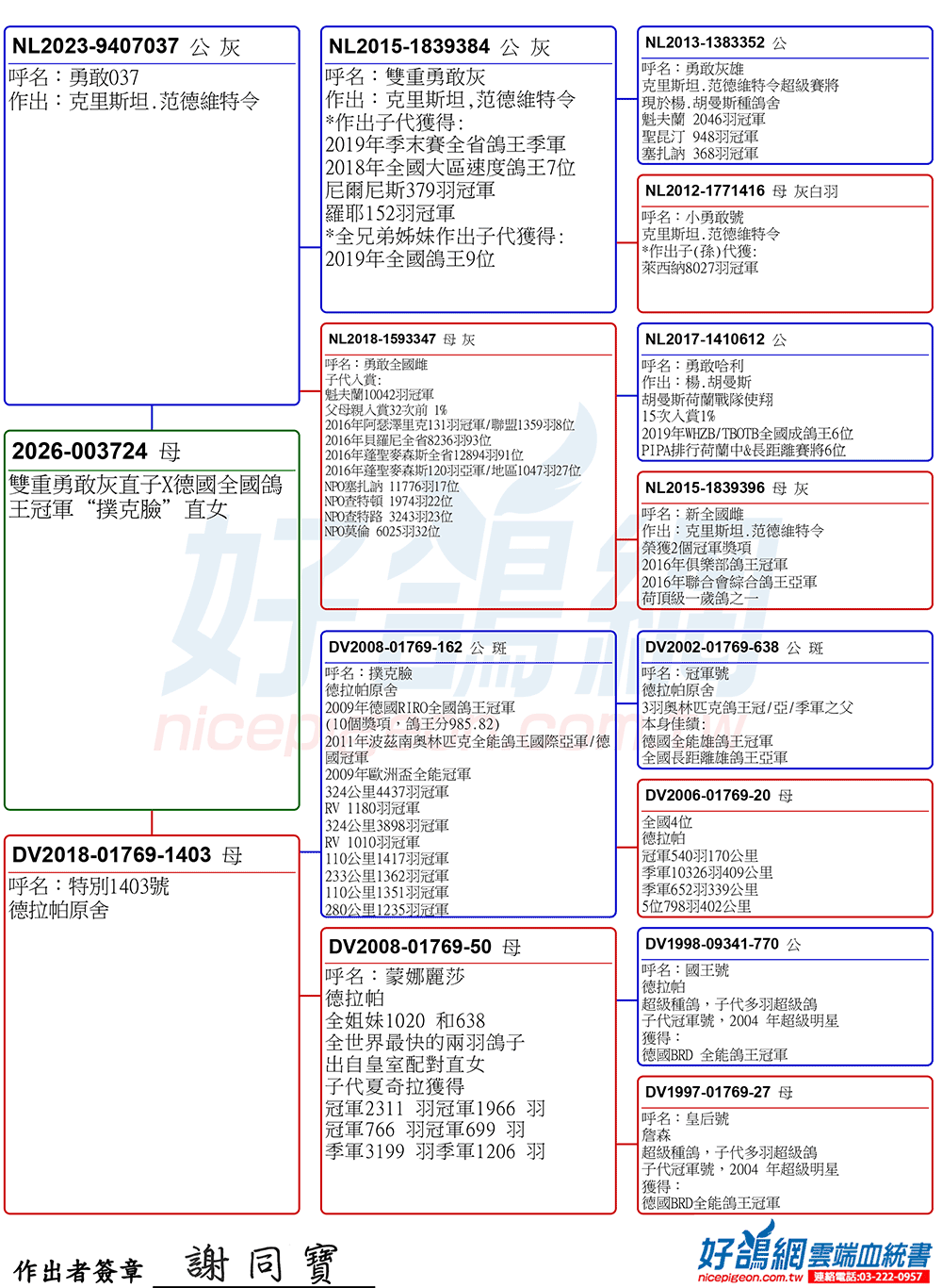 眾所矚目的創天價大名鴿”阿曼多”直子”小阿曼多”震撼引進台灣,板橋名鴿收藏家謝同寶,在一次網路拍賣會中,以極高價位搶標這羽天價世界名鴿的優秀直子,謝董可說是如願以償。