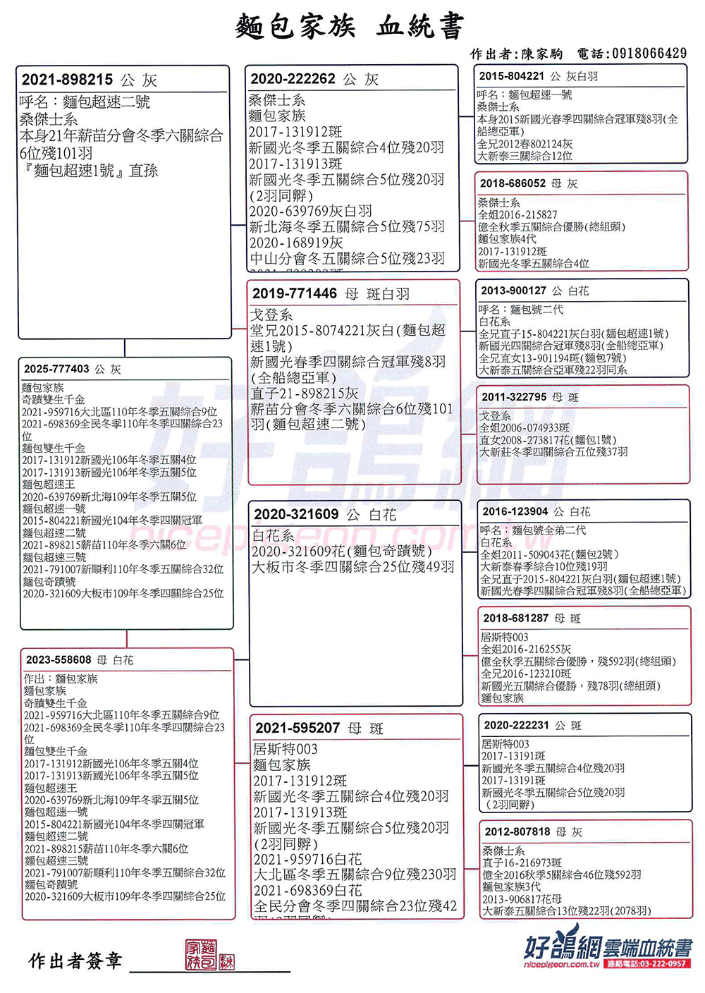 ▲曾祖父:15-804221春季新北新國光四關綜合冠軍(殘8羽)