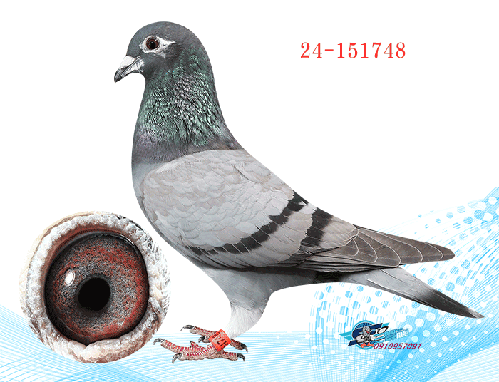 (4)91-02316灰白羽♂黑李3 1 6,其父鴿血統為林波爾,母鴿血統為老西翁系,這羽超級鴿是在1991年自強豪黑李處引進,下代翔續都有延續綜合性及快速歸巢之本能。