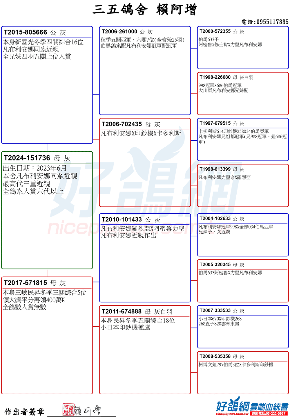 賴阿增12冠血脈集大成特留種鴿