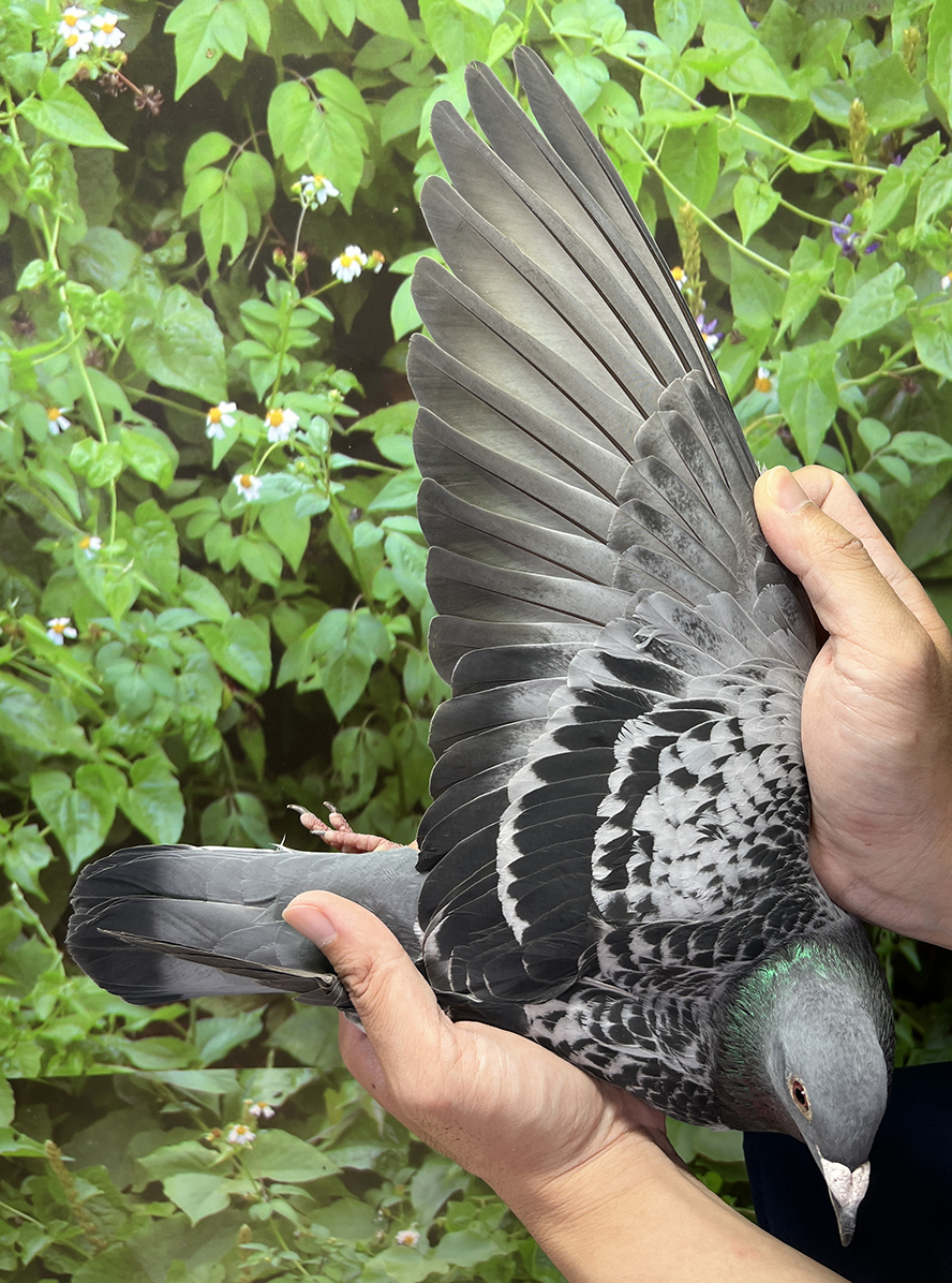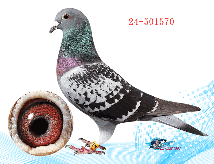 (4)91-02316灰白羽♂黑李3 1 6,其父鴿血統為林波爾,母鴿血統為老西翁系,這羽超級鴿是在1991年自強豪黑李處引進,下代翔續都有延續綜合性及快速歸巢之本能。