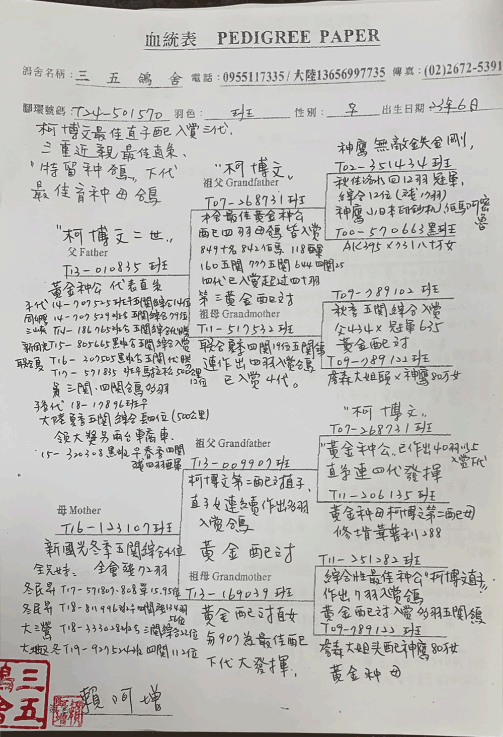 ▲曾祖父:2002-351434神鷹無敵鐵金剛(秋季全會殘17羽12位平分)