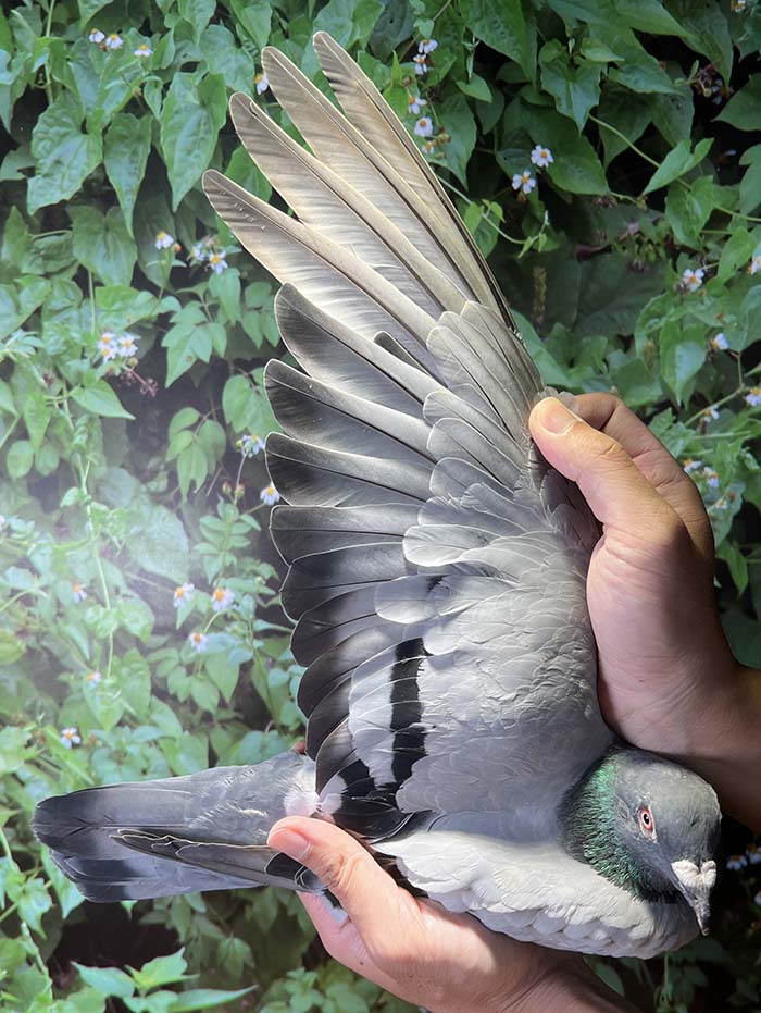 (4)91-02316灰白羽♂黑李3 1 6,其父鴿血統為林波爾,母鴿血統為老西翁系,這羽超級鴿是在1991年自強豪黑李處引進,下代翔續都有延續綜合性及快速歸巢之本能。