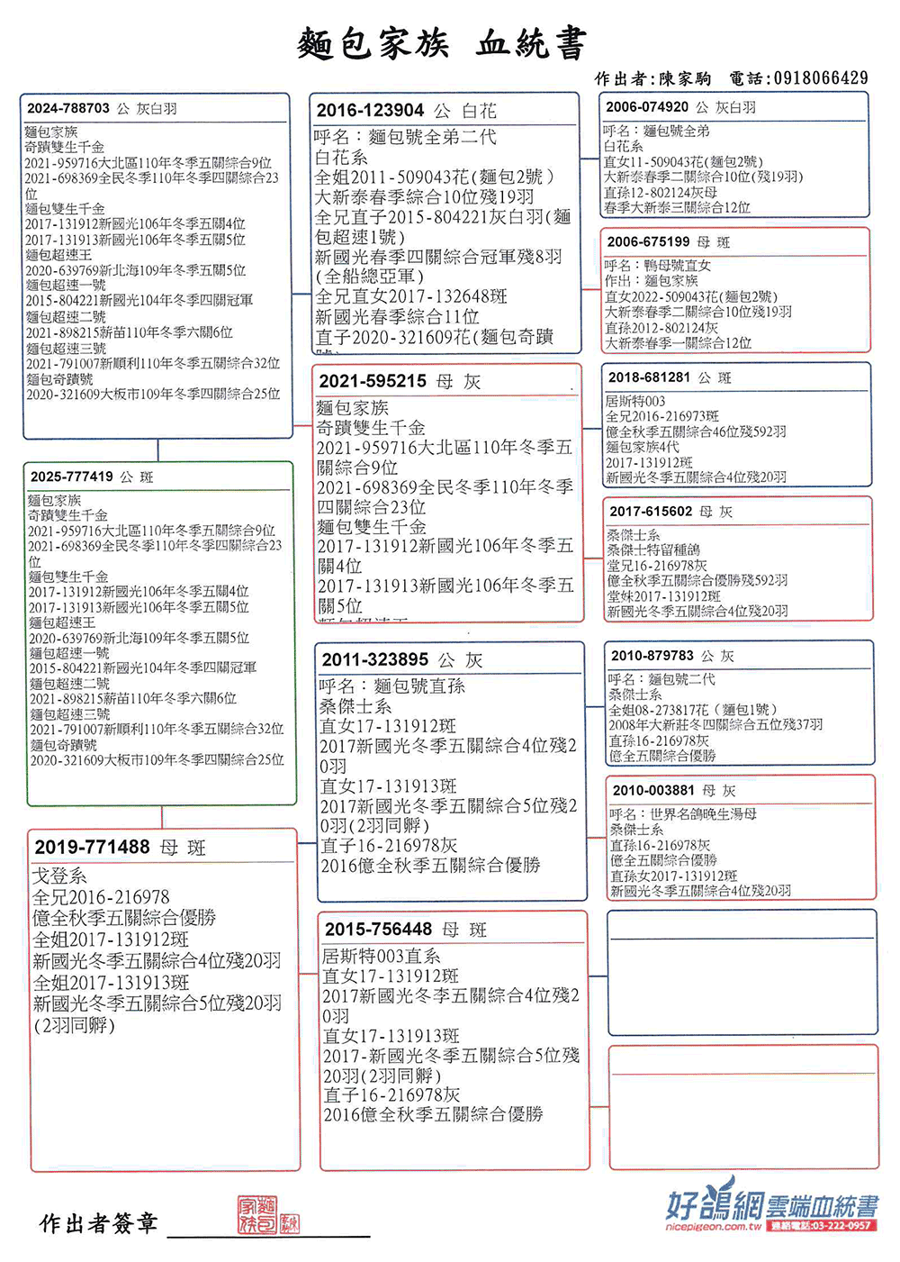 超級888特留種鴿;斗六仁安4610羽綜合季軍(殘48羽)直女;青田夏季殘8羽冠軍(大山輪全船總季軍)家族