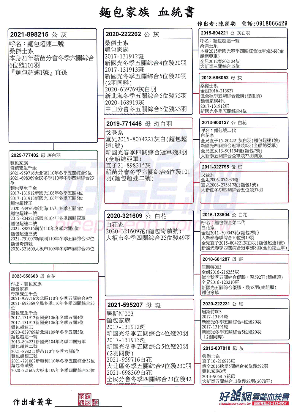 ▲曾祖父:15-804221春季新北新國光四關綜合冠軍(殘8羽)