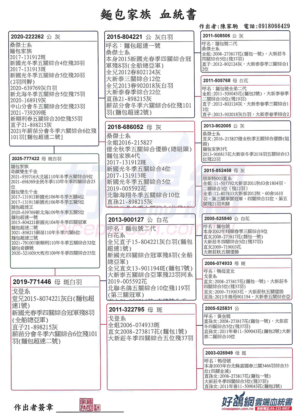 ▲祖父:15-804221春季新北新國光四關綜合冠軍(殘8羽)