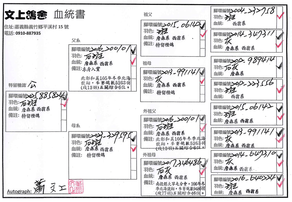 ▲父鴿、外祖父:2016-200101冬季北彰和美五關綜合6位