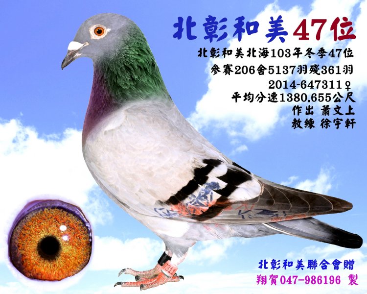2022年冬季北彰和美4217羽四關綜合14位(殘15羽)種鴿提供