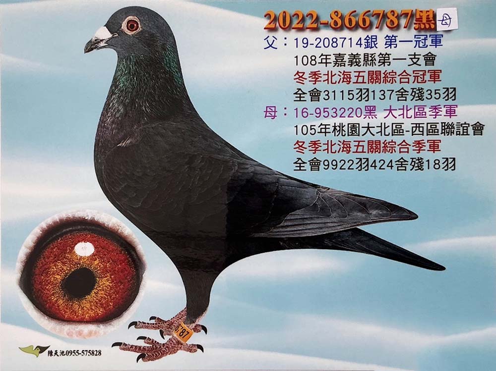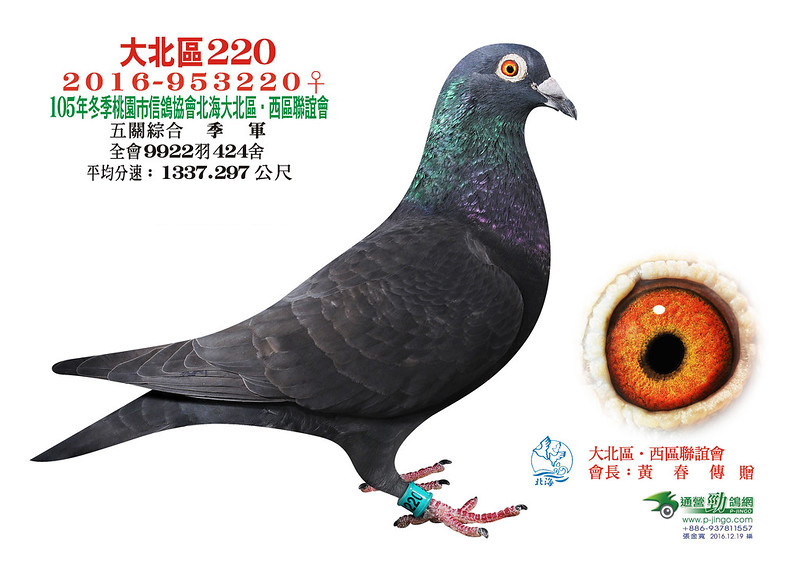 2023年春季北海宜蘭聯合會全會7165羽殘34羽,由基隆榮龍鴿舍潘國輝.張太郎作出23-762818灰母(使翔:邱宏宜,教練:陳志翔),入賞三關綜合14位。