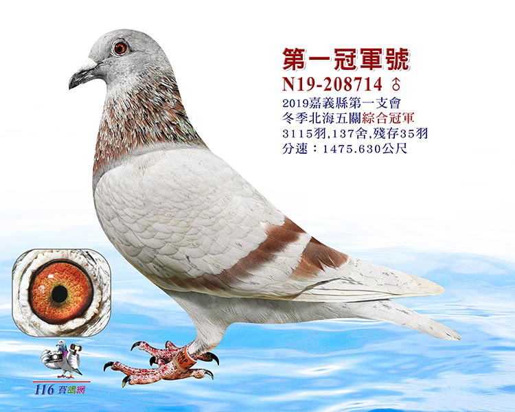 ▲父鴿:19-501785冠軍伯馬灰金磚