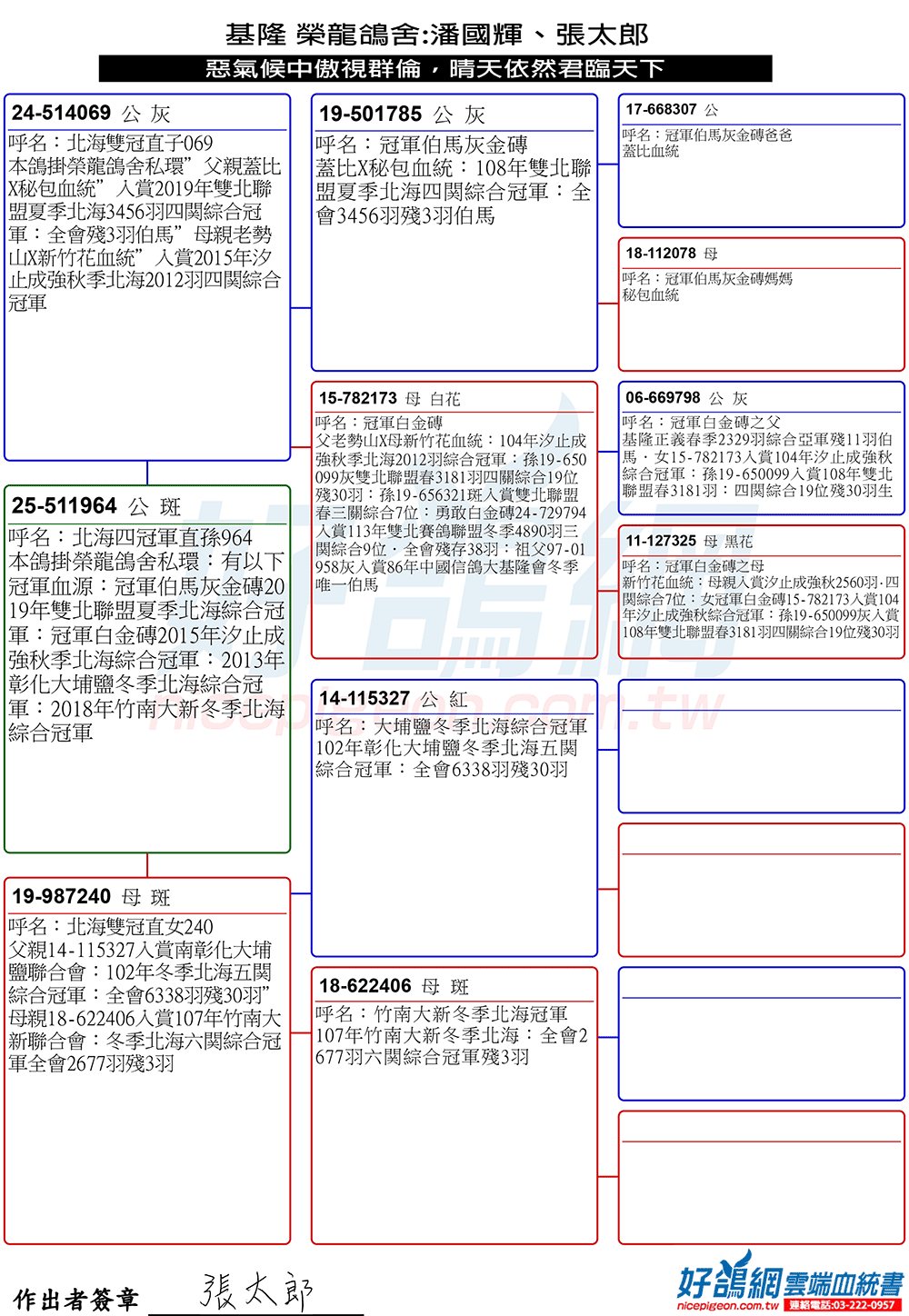 ▲外祖母:18-622406冬季苗栗大新2677羽六關綜合冠軍(殘3羽)