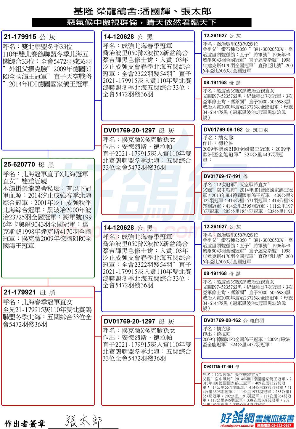 100%皇立號血脈;2021年冬季新竹大西區4265羽六關綜合36位家族
