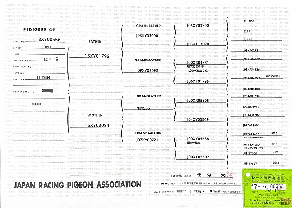▲父鴿:J15-XY01796(贈送鴿35A)